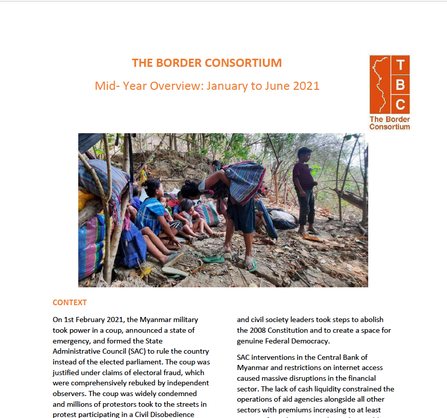 The TBC Mid-Year Overview, which offers a six-month update (Jan – Jun 2021) on the situation of refugees and TBC’s programmes, strategic directions, and finances is now available in English here & Burmese here.
