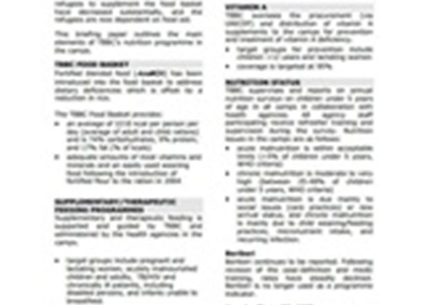 Improving Nutrition and Health Service Delivery in Refugee Camps along the Thailand-Burma/Myanmar Border