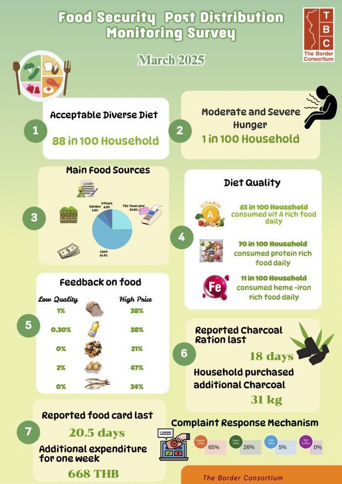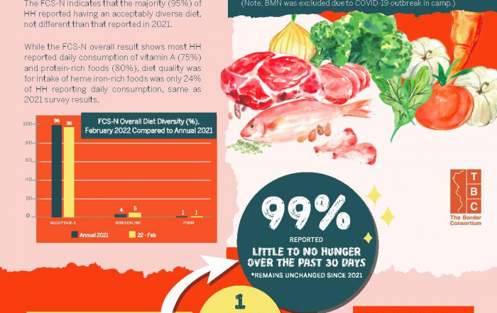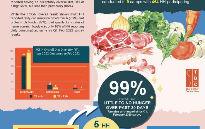 TBCs Q1 Food Security Post Distribution Monitoring Survey is now available in English, Burmese and Karen.