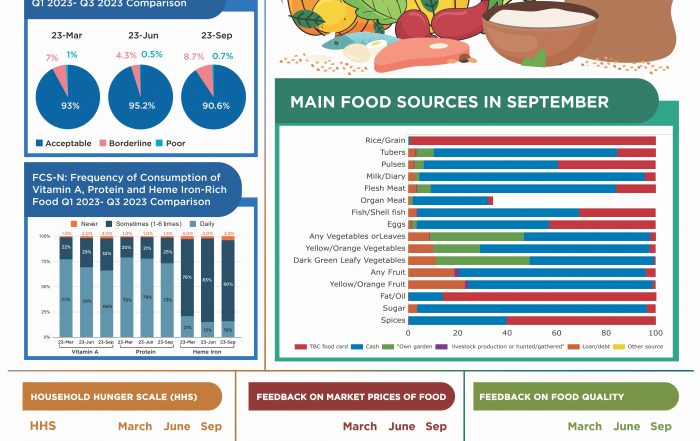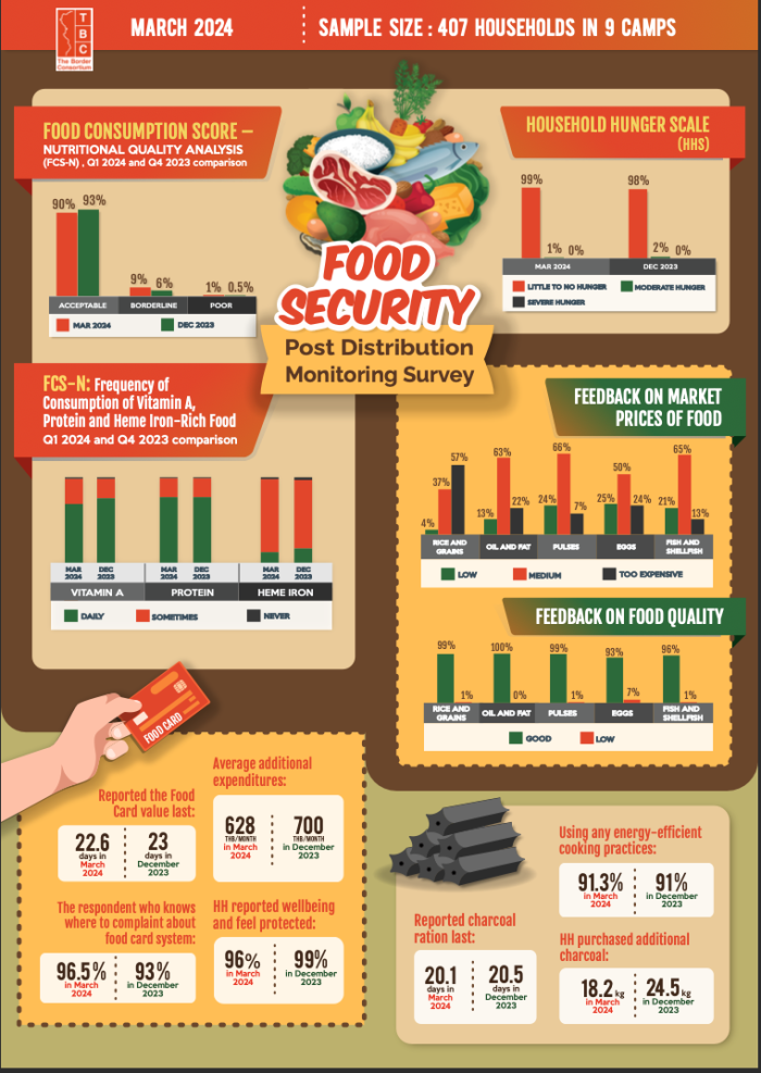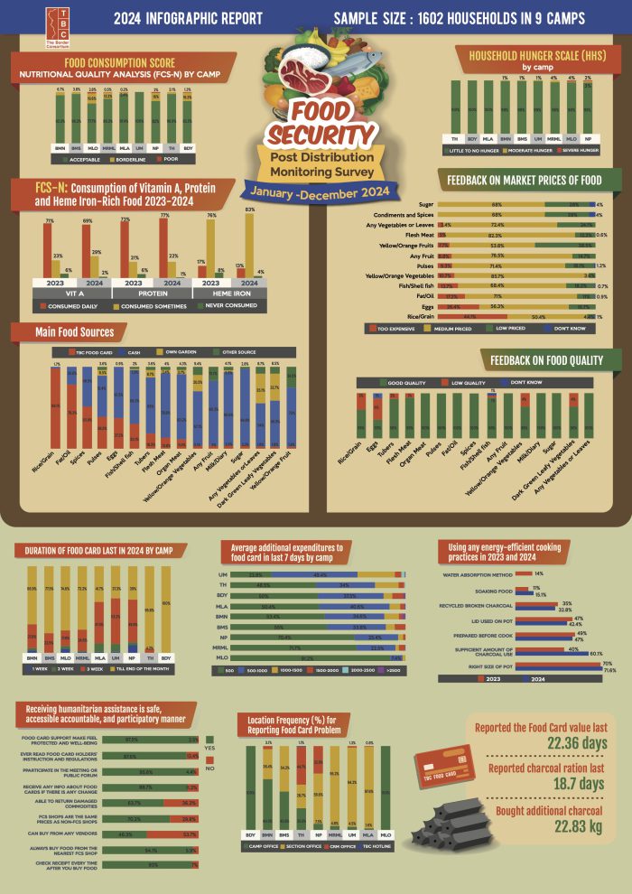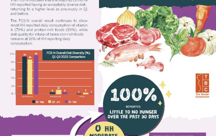 TBCs Food, Security and Nutrition Post Distribution Monitoring infographgics for Q3 of 2024 is now available in Karen, English & Burmese.
